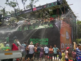 写真は、JUNの海外駐在員便りNEWS-37「Myanma写真集-05」から、ヤンゴンの水かけ祭。盛大にぶっ放してます。