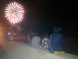写真は、アッキーと仲間たち/僕たちの旅#039「お盆休み」からの一枚。港で見る今泉の打ち上げ花火がキレイです。