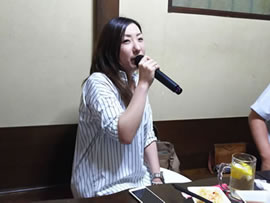 写真は、まっさん命!その39「勧酒(さけをすすむ)」から、県庁まっさん会で「秋桜」を熱唱する山口トモエさん(笑)