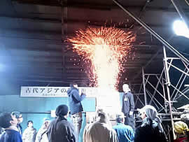 写真は、アッキーと仲間たち/僕たちの旅#050「新見市製鉄実験-3」から、アッキーが参加した岡山県の製鉄実験。天井まで届く炎が大迫力。 僕たちの旅「新見市製鉄実験-3」