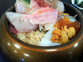 写真は、ホンチの冷静と情熱の間に#010「復興海鮮丼♪」からの一枚。この海鮮丼、何と味ご飯のすし飯なのです!