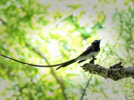 写真は、T.sakumaの野鳥ギャラリー第六集「サンコウチョウ特集」からの一枚。長い尾羽が美しい。 野鳥ギャラリー「サンコウチョウ特集」