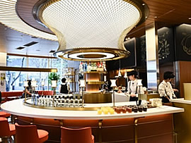 写真は、カリスマ彰のファッションの達人!239「新しい都心商業施設の在り方を示した東京ミッドタウン日比谷」から1階のカフェ。何もかも新機軸。
