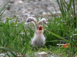 写真は、T.sakumaの野鳥ギャラリー第九集「夏鳥さんたち」からの一枚。まるでウサギのようなコアジサシの幼鳥。 野鳥ギャラリー「夏鳥さんたち」