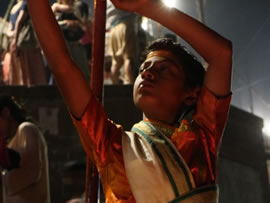 写真は、葉羽詩集と大和伸一写真館のコラボでバラナシ第7弾「プージャの夜」忘れえぬ少年。