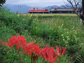写真は、なっちヤンの会津夢紀行#163「ばんえつ物語号/彼岸花」で、一年ぶりの投稿。もう少しマメにお願いします(笑) 会津夢紀行「ばんえつ物語号/彼岸花」