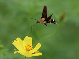 写真は、T.sakumaの野鳥ギャラリー第13集「秋の気配」からの一枚。ハチドリのように蜜を吸う蛾の一種。