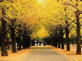 写真は、ツーさんの雑感66「旅路にて:訪れた時が」から光が丘公園の銀杏並木。紅葉を目指して旅したら近所にこんな場所が。