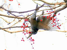 写真は、T.sakumaの野鳥ギャラリー第19集「冬の野鳥たち」からの一枚。イイギリの赤い実とのコントラストが素敵! 野鳥ギャラリー「冬の野鳥たち」