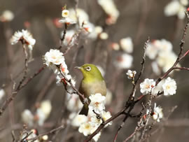 写真は、T.sakumaの野鳥ギャラリー第21集「花とメジロ」からの一枚。梅にとまったメジロを梅ジローと言うそうです。 野鳥ギャラリー「花とメジロ」