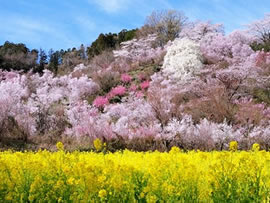 写真は、アンブレラあつしの風に吹かれて110「弥生三月、別れ月。」の背景画像。見頃はこれからなので昨年の写真です。