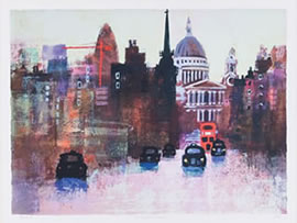 写真は、ツーさんの雑感82「鑑賞眼」からコリン・ラッフェル作の「saint paul and taxis」。二人ともが好きな版画家です。