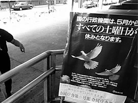 写真は、アンブレラあつしの風に吹かれて113「レンキュウ、ベリーマッチ」の背景画像。半ドンが消えて週休二日になった頃。