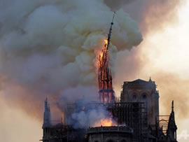 写真は、毒舌亭の常緑音楽館便りNO-100「ノートルダムの僵僂男」からノートルダム大聖堂。火災で焼け落ちる寸前の模様。