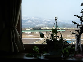 写真は、なっちヤンのストーリー写真館その19「きっと貴方ですね」の背景画像。窓辺を通りがかった磐越物語号です。 ストーリー写真館「きっと貴方ですね」