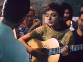 写真は、毒舌亭さんの常緑音楽館便り145「赤と青のブルース」より。映画のラストで自ら主題歌を歌唱。先日80歳で亡くなりました。ヌーヴェルヴァーグの名花の一人。美しい女優さんでした。