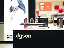 写真は、金曜のカリスマ彰/ファッションの達人!285「さらに拡大続ける百貨店の化粧品売り場」より。dysonの美容機器売り場は日本初登場。