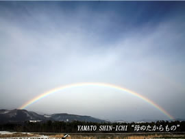 写真は、大和伸一写真館第45集「母のたからもの」からの一枚。初冬の荒井の風景。吾妻連峰に大きな虹がかかりました。 大和伸一写真館「母のたからもの」