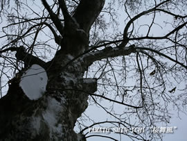 写真は、大和伸一写真館第46集「桜舞風(サクラマウカゼ)」からの一枚。嵐に抗い驟雨の秋を越え天に向かって凛と立つ桜の姿。ここに着目する感覚は素晴らしい。