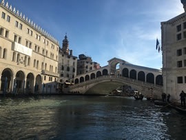 写真は、カリスマ彰のファッションの達人!その291「極私的2019年コンサート&オペラベスト10」からヴェニスのリアルト橋。この先にマリブラン歌劇場が。