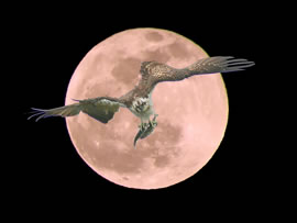 写真は、瞬間の魔術師T.sakumaの野鳥ギャラリー第50集「ダブルゲット」からの一枚。よく見るとミサゴが二匹同時に魚をゲットしています。背景の満月は合成です(笑) 野鳥ギャラリー「ダブルゲット」
