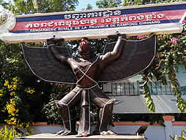 写真は、JUNの海外駐在員便りnews-49「カンボジア便り-6」からの一枚。ナーガ神と同じインド神話起源の神様。コンポンチュナンの州事務所前にある。