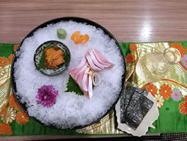 写真は、JUNの海外駐在員便り58「行列の女神」からプノンペンで食べるウニとブリの刺身。コロナ禍で帰国できないため、コレで日本酒を飲(や)れるのがせめてもの救いか。