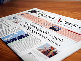 写真は、自分の文章が入試問題に取り上げられるというカリスマ彰の夢が叶うことになったJapan Newsの掲載記事。掲載されたのは別の号ですが。