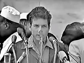 写真は、毒舌亭の常緑音楽館便り200号「解決していないから歴史は繰り返す」より若き日のボブ・ディラン。集会で積極的にプロテストソングを歌っていました。