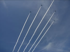 写真は、Storyスナップ「感動!東北六魂祭」からブルーインパルス飛行隊。親戚のビルの屋上に上がっていたら、その真上を通過しました。まさに絶景ビューポイント!
