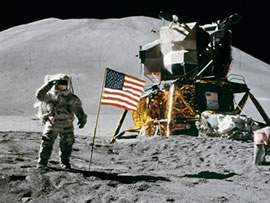写真は、月曜日の男ツーさんの雑感からアポロ11号のアームストロング船長が月面への偉大なる一歩を刻んだ画像。合成写真だとか陰謀論が囁かれました。