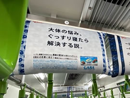 写真は、金曜のカリスマ彰ファッションの達人!から電車の中の中吊り広告。最近はこんなふうに本物の枕を吊るしたり、布団を吊るしたり(笑)