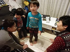 写真は、Storyスナップ「嗚呼!怒涛の大晦日」からの一場面。サオリとオリカの緊急入院で、大晦日行事の助っ人に駆け付けた僕らは、得意の手打ちうどんをすることに。