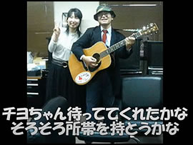 写真は、謎のおじさんアンブレラあつしの風に吹かれてから「ニッセイのおばちゃん」のCMソング"もくせいの花"。チヨちゃんは絶対待っててはくれない(笑)