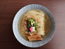 写真は、JUNのリモート駐在員便りより太太さんが食べた鯛塩そば。イオン上尾店のフードコートに出店している「灯花」の名物。麺が綺麗に揃っているところが美しいです。