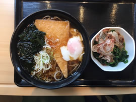 写真は、カリスマ彰のファッションの達人「最近の朝飯二題」から富士そば新宿三丁目店の朝そば。数年前から改良が進み、今ではもうチェーン店の蕎麦とは侮れないほどに。