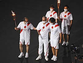 写真は、謎のおじさんアンブレラあつしの「風に吹かれて」から、東京オリンピック2020開会式の模様。この3人の聖火ランナー登場は喝采ものだと思います。
