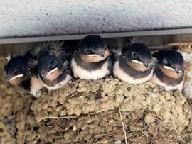 写真は、瞬間の魔術師T.Sakumaの野鳥ギャラリーからの一枚。ツバメの雛たちがエサを持って帰ってくる親を待ちわびている様子。5羽だと親鳥も大変ですね(笑) 野鳥ギャラリー「ツバメの雛たち」
