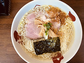 写真は、新・僕達のラーメン道より二本松市の支那そばやまきの「塩そば」。郡山市に本店がある「正月屋」の分店ですが、まるでアートのように洗練された上品な一品。 新・僕達のラーメン道「支那そば/やまき」