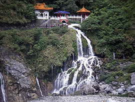写真は、エンジェルさんの初めての台湾旅行♪からの一枚。滝の上にあるこの長春祠は、難所の道路工事で命を落とした人たちの霊を祭って1958年に建てられたものです。 初めての台湾旅行♪「長春祠編」