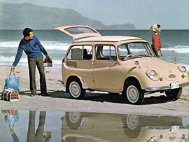 写真は、謎のおじさんアンブレラあつしの「風に吹かれて」から昭和の名車スバル360。昔のCMの画像ですが、もしかすると当時はモノクロだったかも。
