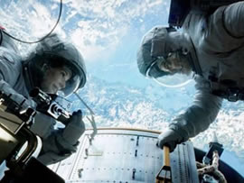写真は、カリスマ彰版cinemaアラカルトから「ゼロ・グラビティ」の一場面。この後、宇宙デブリが飛来してエライ事に!