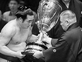 写真は、月曜日の男ツーさんの雑感から初代栃東の賜杯授与風景。かつて福島県相馬市出身の彼が活躍し、現在は福島市出身の若隆景が。