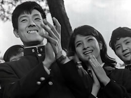 写真は、謎のおじさんアンブレラあつしの「風に吹かれて」より「高校三年生」を歌った頃の舟木一夫。選挙法が変わり高校で選挙権をもつ者も。