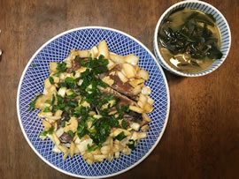 写真は、金曜日のカリスマ彰ファッションの達人2から失敗した手料理「カツオ叩き丼」。もう一品ありますが、見た目ではこちらの方が美味しそうなので(笑)