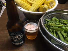 ファッションの達人2「本日の昼食は愚妻が収穫した枝豆とトウモロコシと 叔母が送ってくれたクラフトビール」