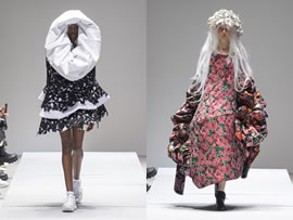 写真は、コムデギャルソン2023年春夏ウィメンズコレクションに出展した川久保玲の新作コレクションより。妊婦ファッションに見える思い切ったデザイン? ファッションの達人2「川久保玲、カラインドルー、アンゲロプロス、 寄り添う者たちの円環」