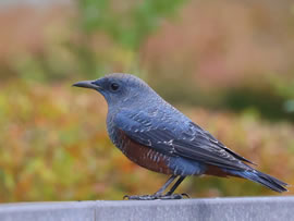 写真は、瞬間の魔術師T.sakumaの野鳥ギャラリーよりイソヒヨドリ。秋らしい背景が似合っています♪ 野鳥ギャラリー「10月に会った鳥たち」
