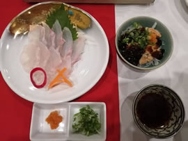 写真は、JUNがプノンペンで行きつけの雅楽で食べた本日のおすすめ。ハタの刺身とあん肝を日本酒でグビッと。いやぁ、たまりませんなぁ!