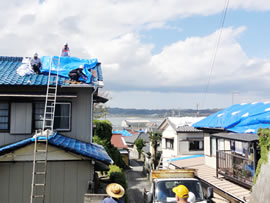 写真は、アンブレラあつしの「風に吹かれて」の背景画像。山形の実家を処分する前に、水漏れを起こした屋根の補修を一人で決行。よくぞ生きててよかったよ。